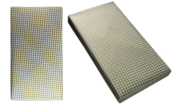 格式の高さを感じる漆黒の化粧箱を開けると、秀吉公由来の黄金の茶室をイメージした「金の家紋紙」がキラリと光り、一目見た瞬間に相手様の心をギュッと掴みます。